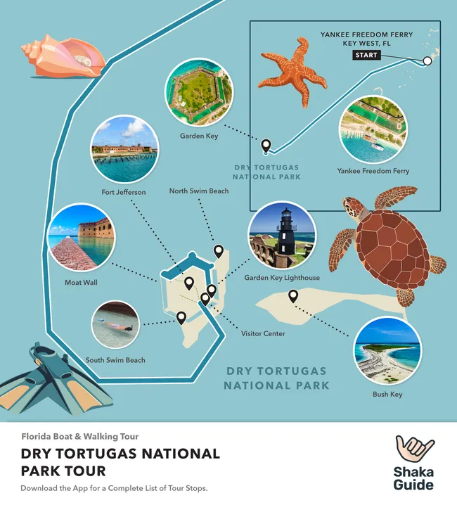 Welcome to Shaka Guide’s audio tour of Dry Tortugas National Park! Your journey begins aboard the Yankee Freedom Ferry as we cruise 70 miles west of Key West to one of the most remote—and breathtaking—national parks in the U.S.