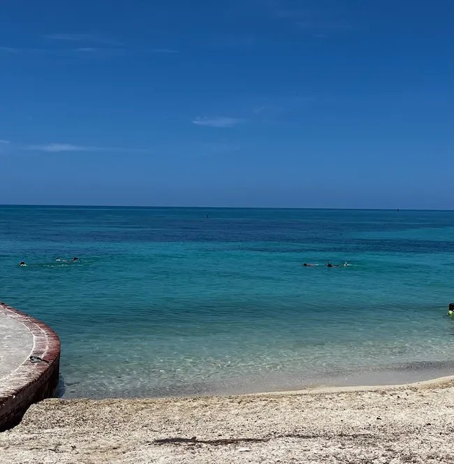 North Swim Beach is a small sandy shoreline on Garden Key in Dry Tortugas National Park, just steps from Fort Jefferson.